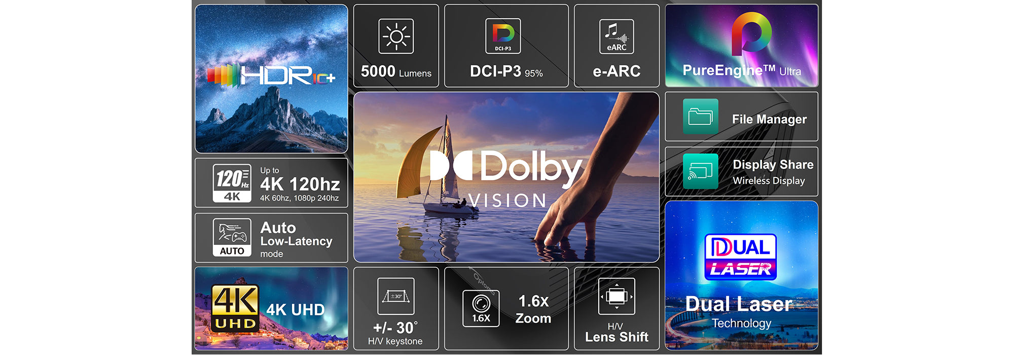5000lm 4K UHD Dual Laser Home Cinema Projector with Dolby Vision Certified.